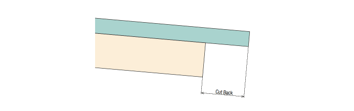 Beim Querstoß von Paneel zu Paneel oder von Paneel zu Lichtplatte ist ein sogenannter Rückschnitt Überlappungsbereich) vorzusehen. Abhängig von der Länge muss im Bereich des Rückschnittes der Dämmkern